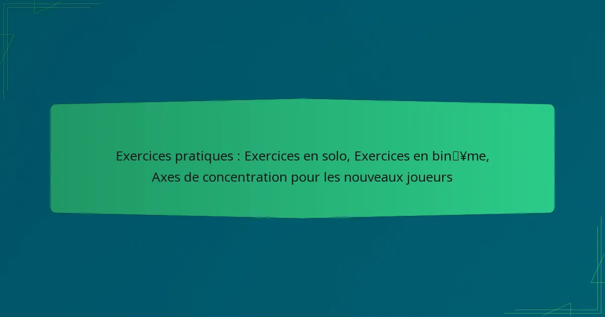 Qu’est-ce que les exercices en solo et comment peuvent-ils bénéficier aux nouveaux joueurs ?