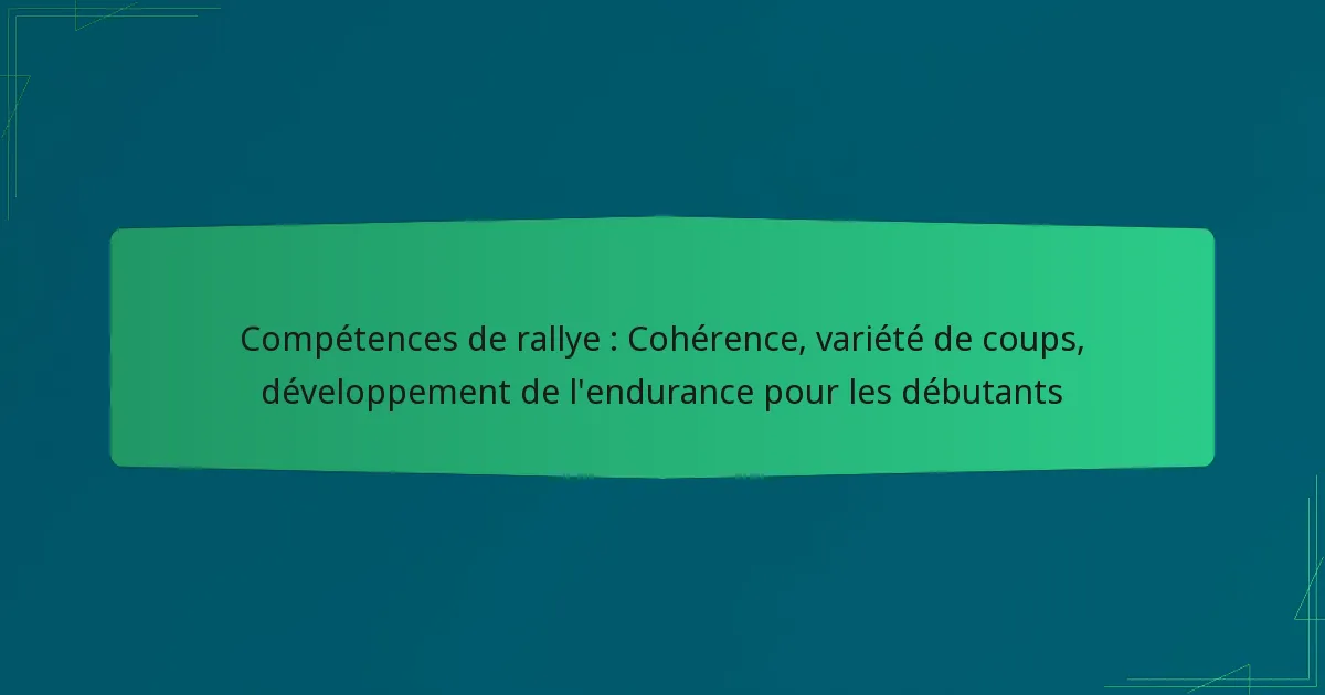 Les compétences de jeu en échange pour les débutants se concentrent sur trois éléments principaux : la constance, la variété des coups et le développement de l’endurance. Maîtriser ces éléments améliore la performance globale et le plaisir dans le sport.